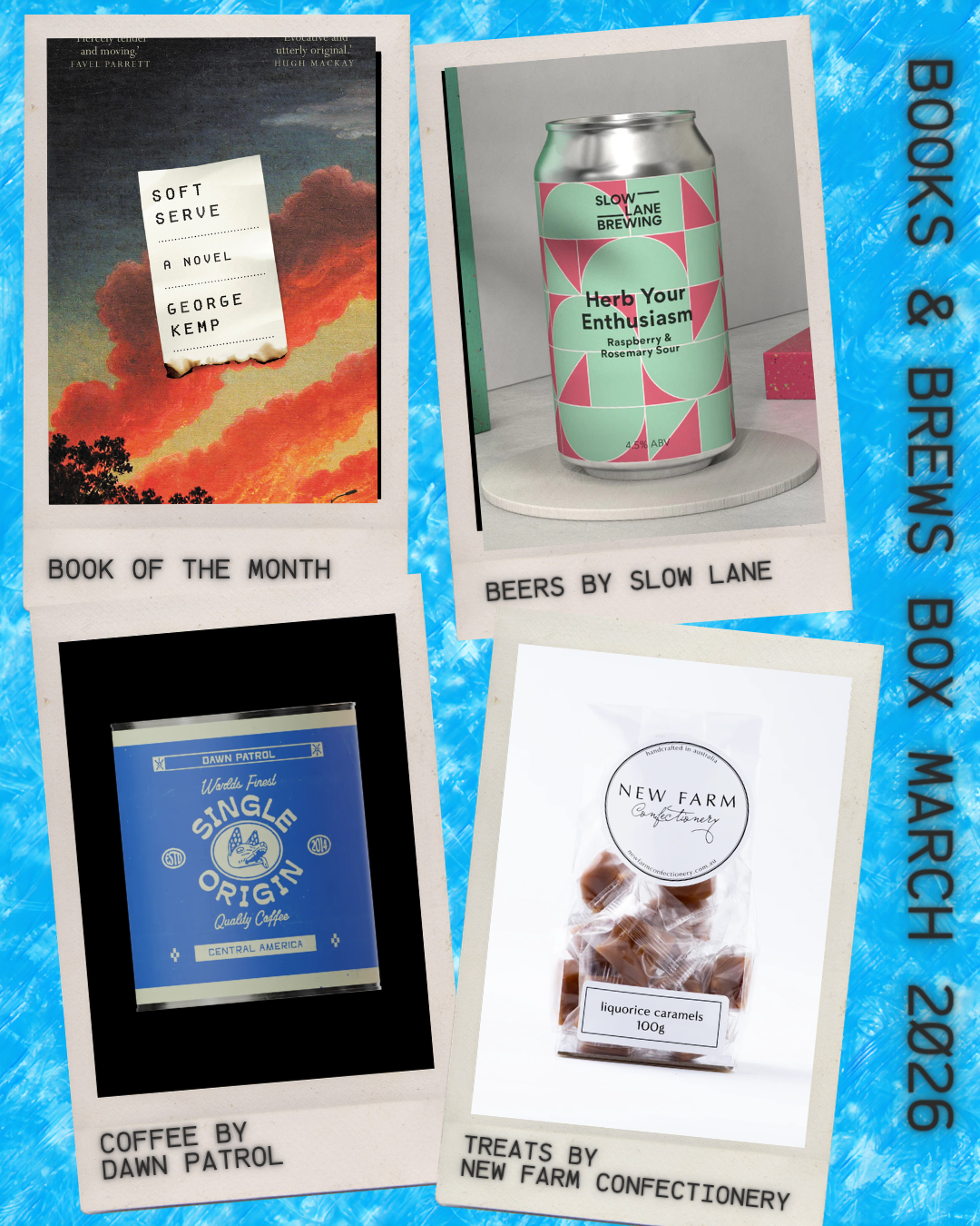 Our Books & Brews boxes include everything from our Core Range box and your choice of freshly roasted coffee beans or freshly brewed craft beer hand selected from the finest independent Australian producers, plus a tasty treat in every box.